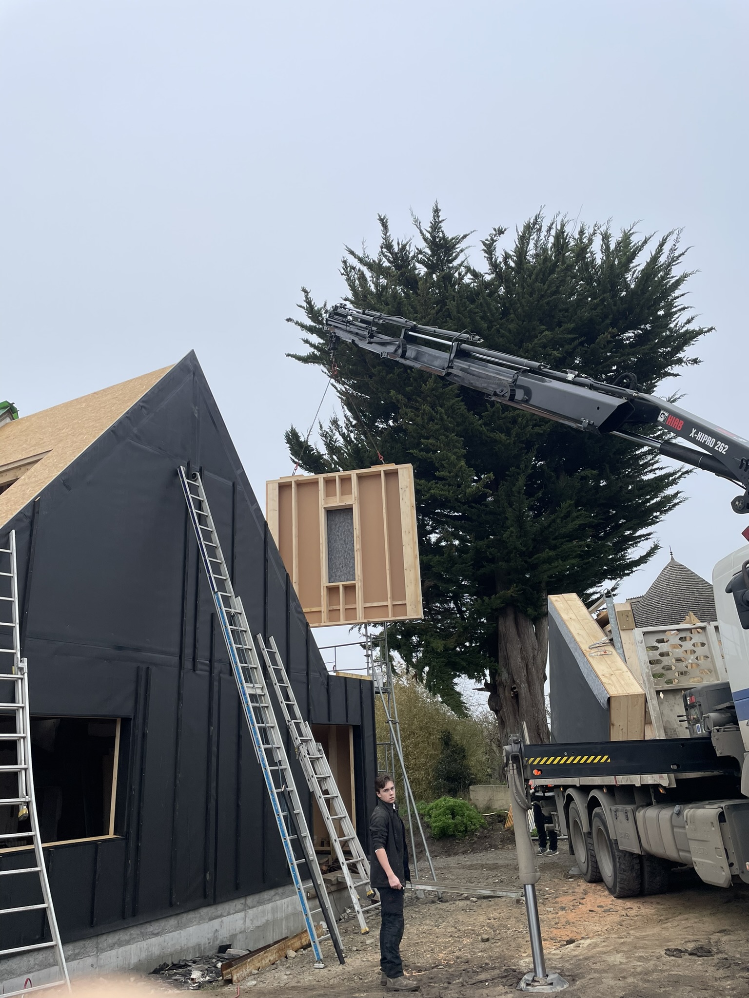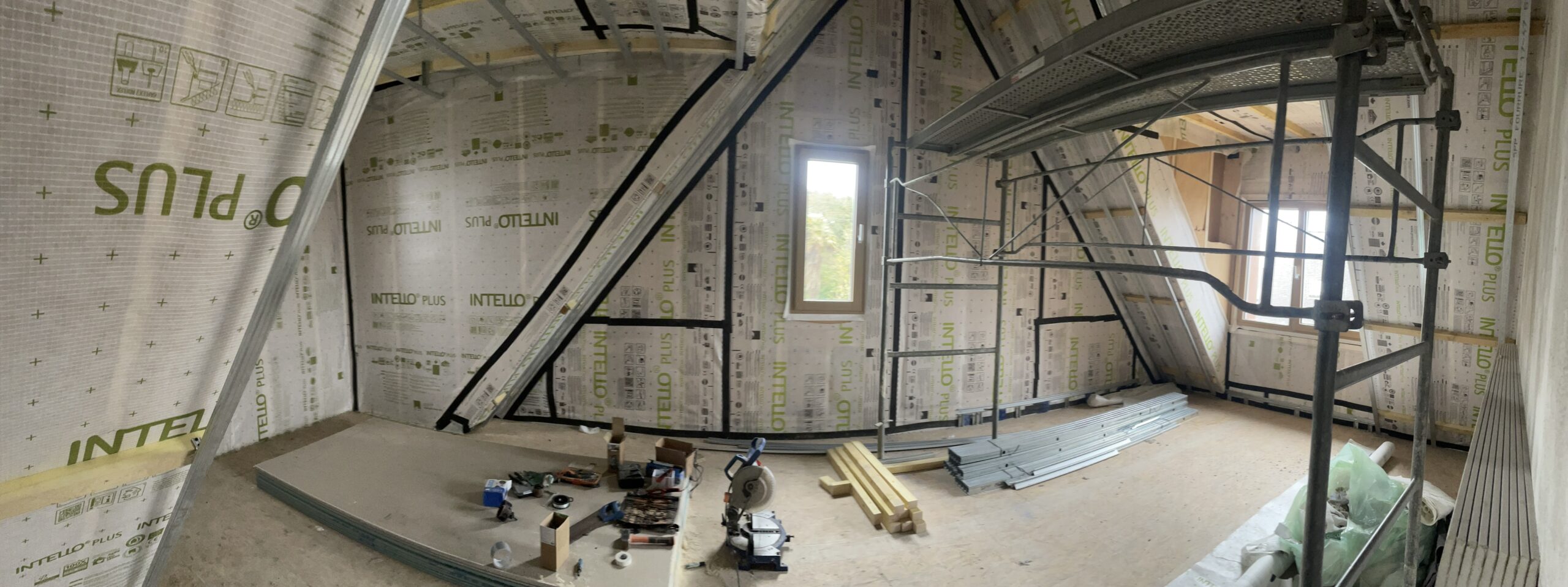 - Mise en œuvre d’un poêle central et ventilation mécanique de l’air chaud dans l’ensemble des pièces de la maison – seul système de chauffage du projet